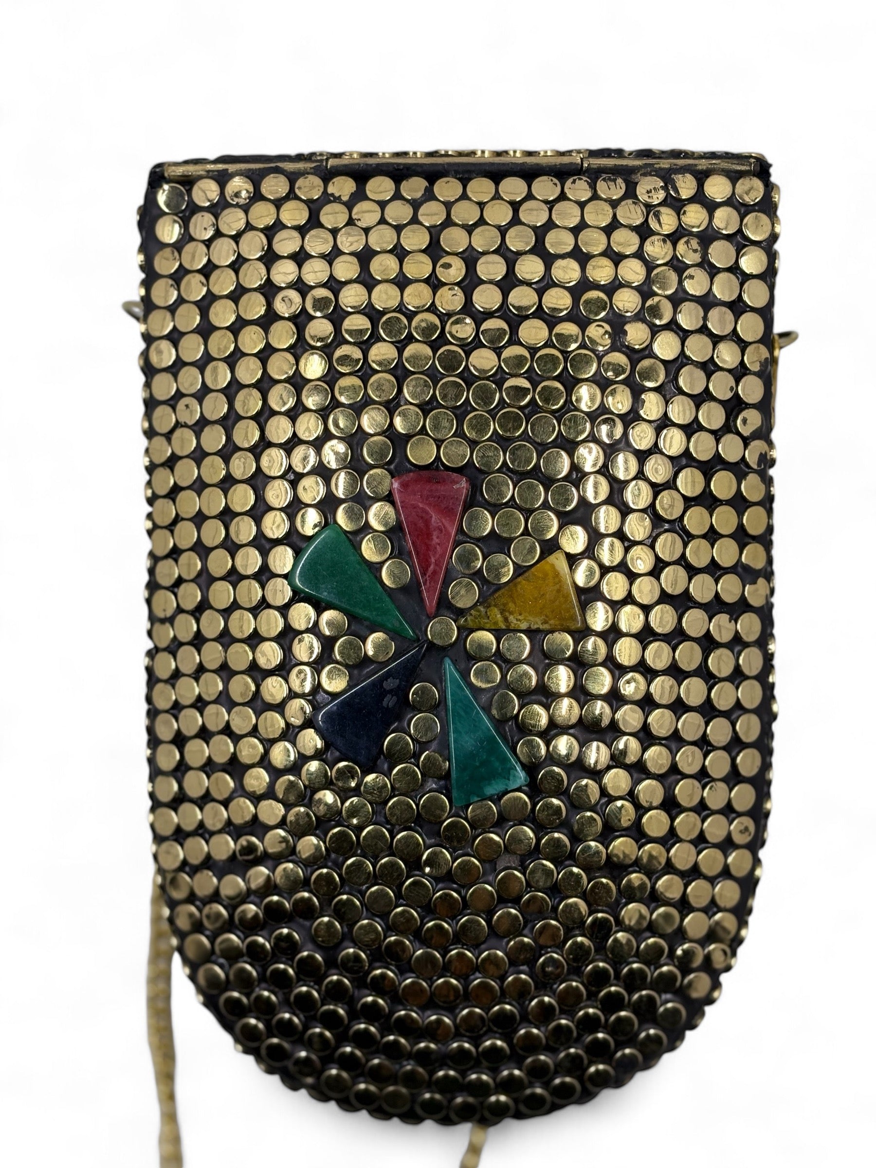 Traditional brass clutch with coloured flower theme