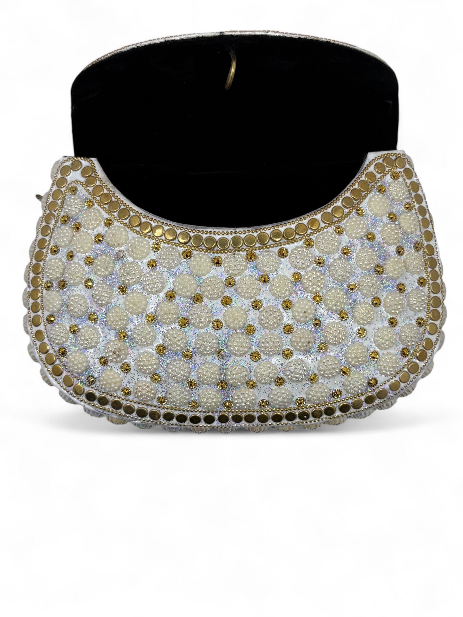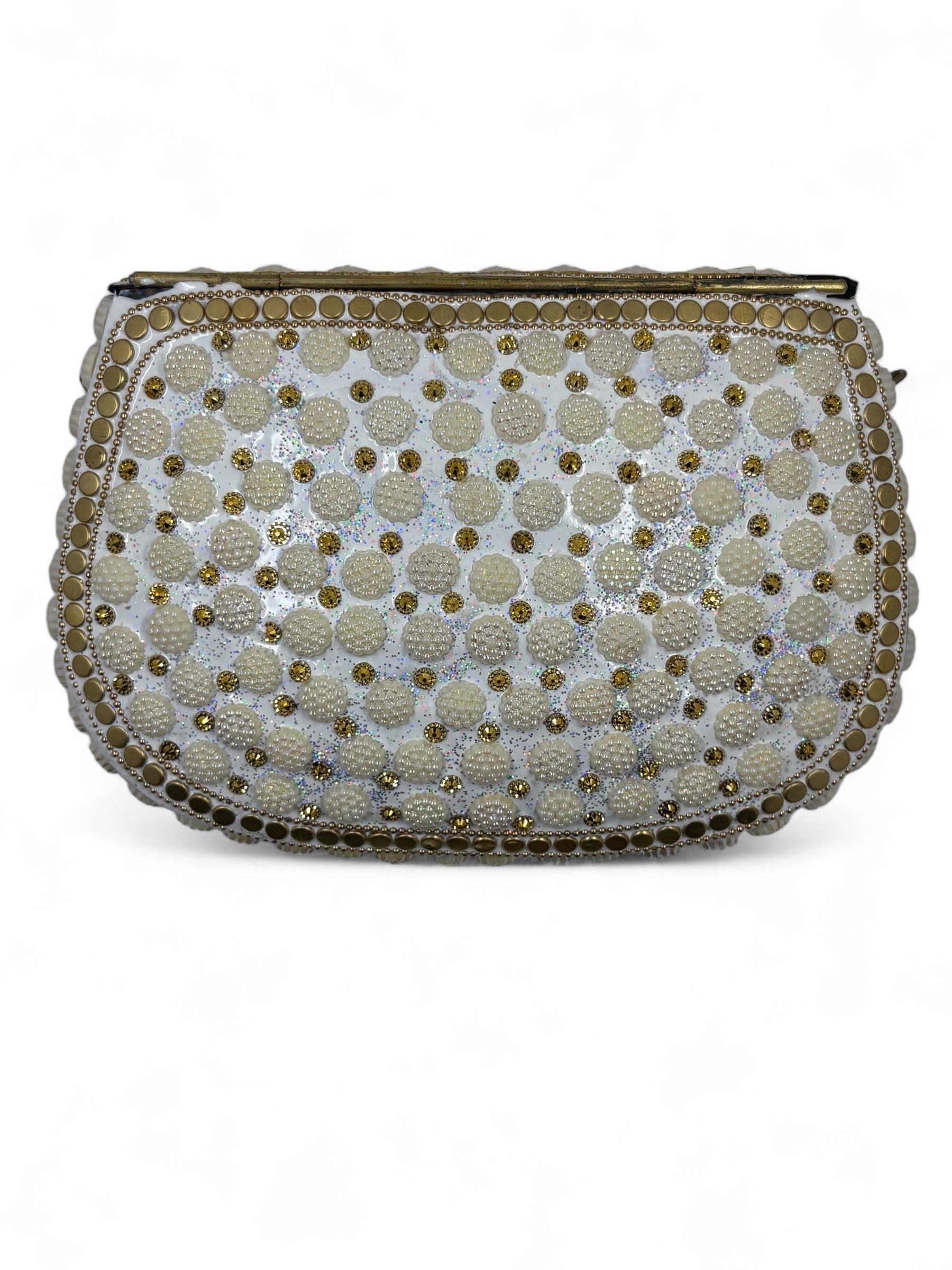 Vintage White stone brass clutch